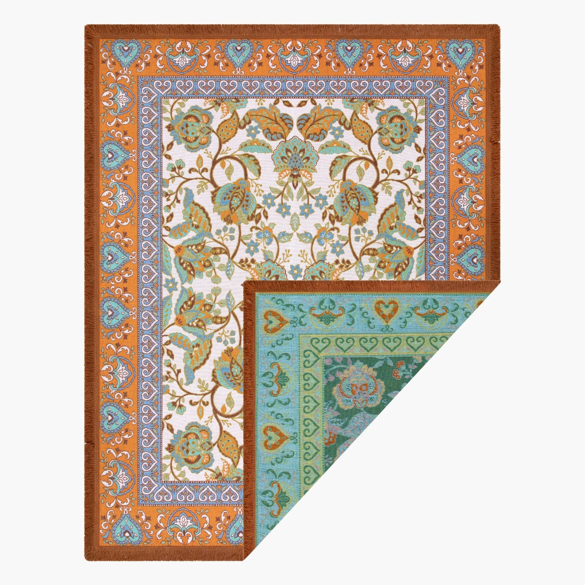 - One-colour tassel trim around the rug