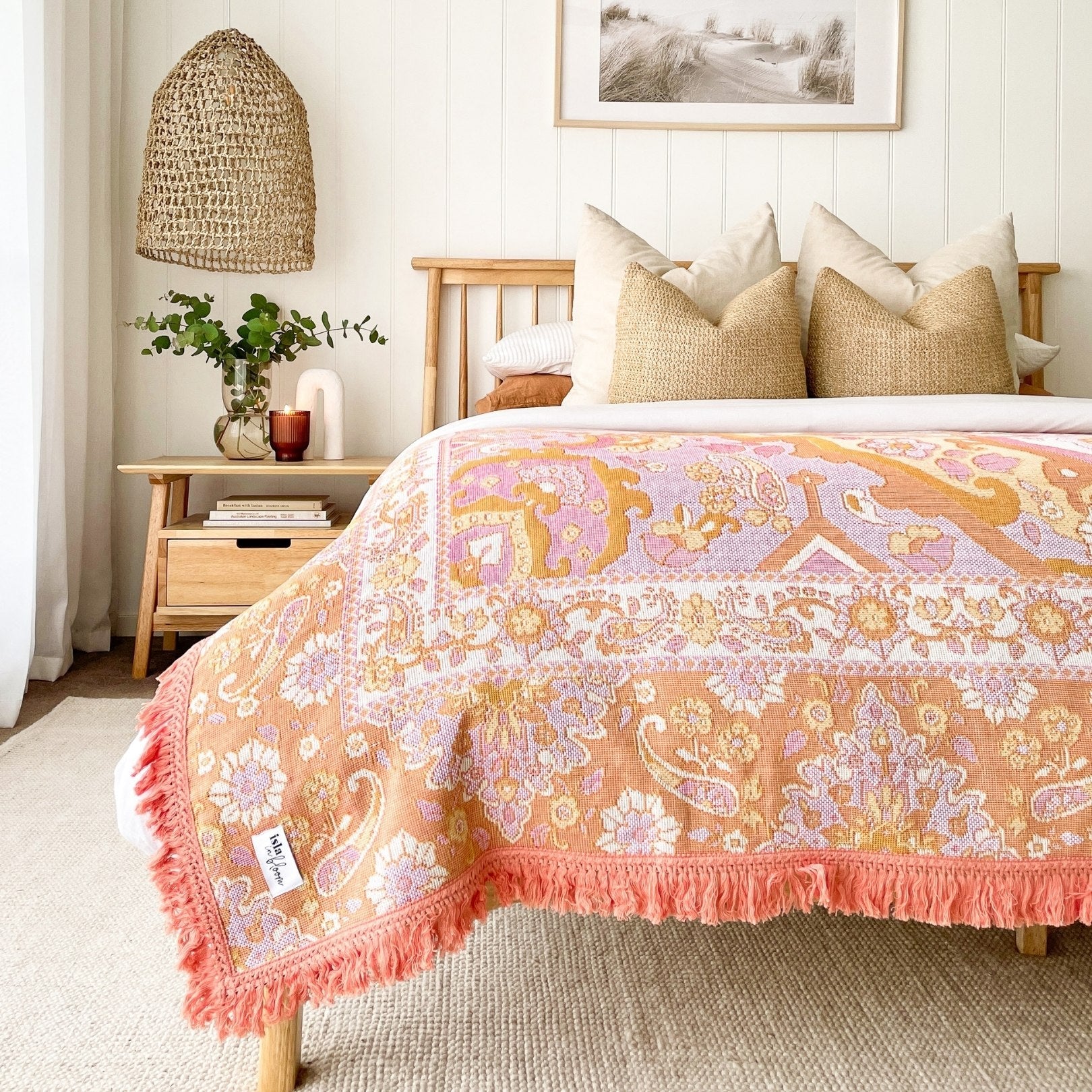 - The length of the picnic rug can be used across the width of a queen bed and it can also be draped across a king bed