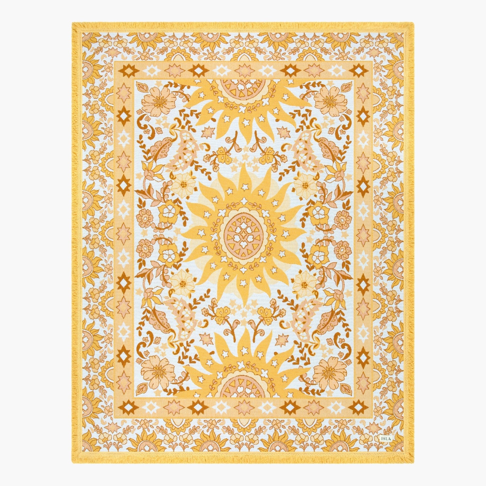 Introducing the Vacanza - your passport to an effortless Euro summer escape. Inspired by the vibrant energy of sun-kissed afternoons, this rug features a playful blend of bright summer hues, and a bold bohemian sunshine pattern. Designed to elevate every gathering, it’s the perfect companion for outdoor adventures, from beachside picnics to alfresco dining.